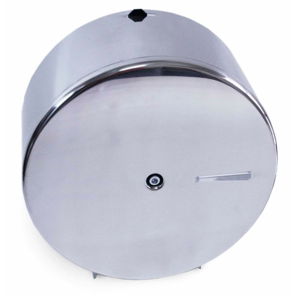 Suporte para rolo de papel de até 400 metros de comprimento. Gabinete construído em aço inoxidável e base de fixação em aço carbono com pintura epóxi.
