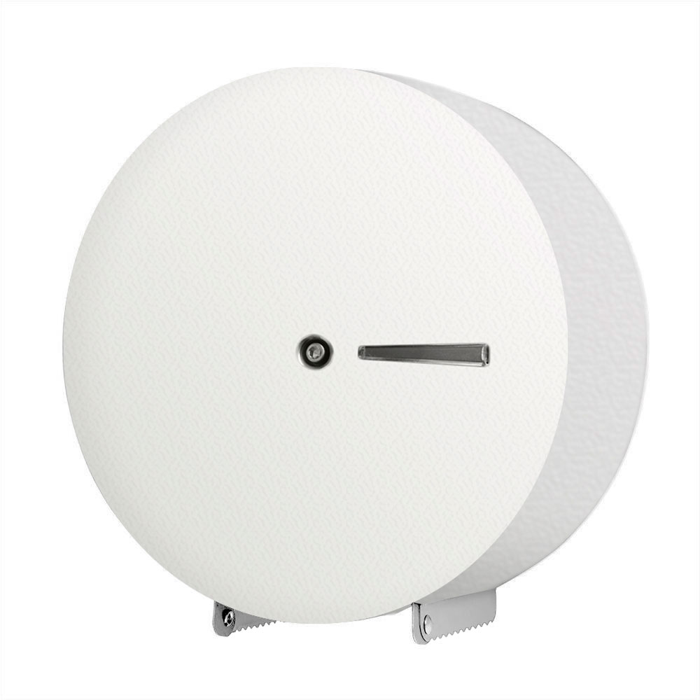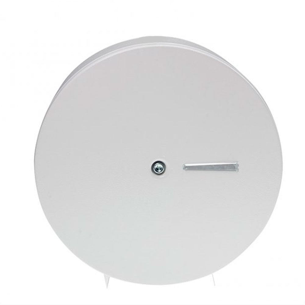 Suporte para rolo de papel de até 400 metros de comprimento. Construído em aço carbono, com acabamento em pintura texturizada epóxi branca.